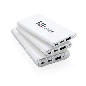 Стильный внешний аккумулятор емкостью 5000 мАч с максимально быстрой зарядкой, доступной на рынке. Изготовлен из прочного пластика ABS. Предусмотренные разъемы - Type C и стандартный USB-порт. Вход Micro USB: 5V / 2A; USB-выход: 5V / 2.4A. Вход Type C: 5V / 2A. Выход Type C: 5V / 3A.