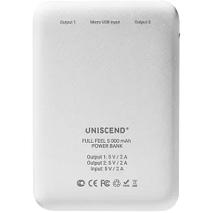 Full Feel — миниатюрный аккумулятор для зарядки устройств со всеми видами современных разъемов. Два порта USB и универсальный кабель 3-в-1 с разъемом Type-C делают Uniscend Full Feel 5000 mAh оптимальным подарком для любого пользователя смартфонов и небольших планшетов.