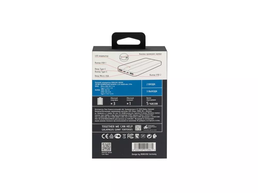 Литий-полимерный внешний аккумулятор емкостью 10000 мАч. Защита от перегрузок, короткого замыкания, чрезмерного заряда и разряда. Автоматическое включение/выключение. Достаточно подключить кабель к разъему мобильного устройства и начнется заряд. LED индикатор показывает уровень заряда (заряжен/в процессе заряда/разряжен). Количество зарядов смартфона до 3 раз (зависит от емкости аккумулятора смартфона). Кабель в комплекте. Заряжает 3 устройства одновременно! TYPE-C выход