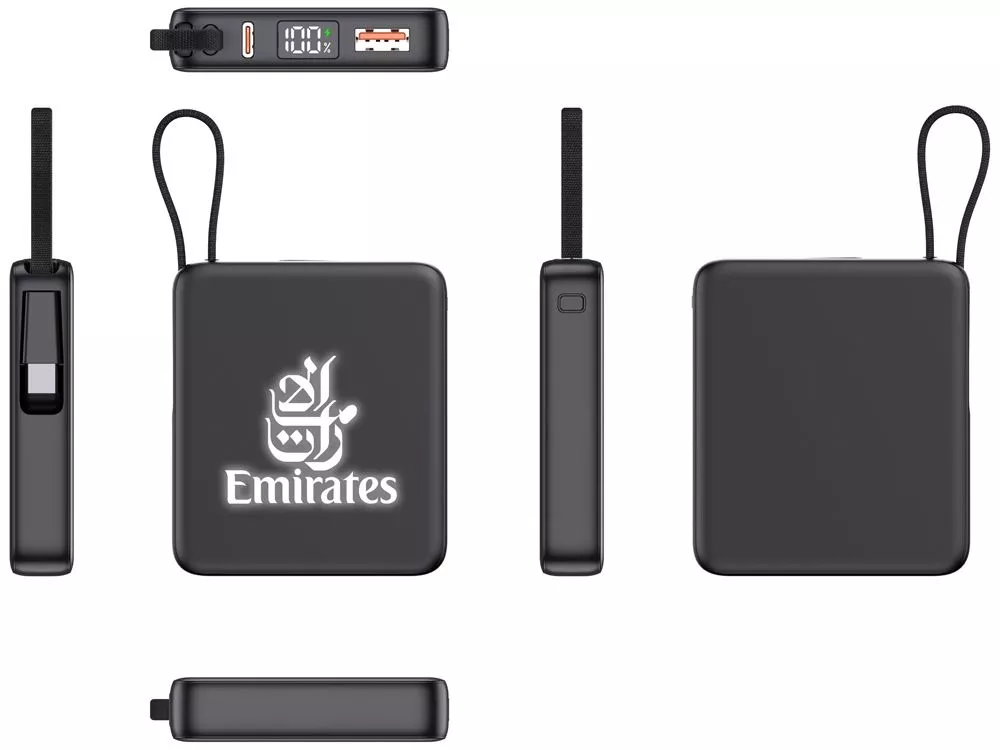 Миниатюрный и функциональный повербанк – идеальное сочетание компактности, технологичности и стиля. Этот современный повербанк, помещающийся в ладонь, станет незаменимым аксессуаром для тех, кто ценит удобство и стиль. Благодаря продуманному дизайну и инновационным решениям, он не только экономит место, но и подчеркивает индивидуальность своего владельца. А возможность брендирования светящимся лого делает его мощным инструментом для рекламы вашего бизнеса. Уникальные преимущества: - Встроенный кабель Type-C и он же петелька для переноски: Современный стандарт Type-C, подходящий для зарядки всех последних популярных смартфонов, включая iPhone. Кабель также выполняет роль удобной петельки - Классический разъем USB-A: Для зарядки устройств без Type-C – универсальное решение для любых гаджетов. - Светящийся логотип: Привлекает внимание и становится ярким элементом вашей рекламной кампании. - Цифровой дисплей уровня заряда: Позволяет точно контролировать остаток энергии - Матовое софт-тач покрытие: Удобное и приятное на ощупь, оно предотвращает скольжение и придает повербанку премиальный внешний вид. Этот повербанк – идеальный выбор для тех, кто ценит компактность, функциональность и стиль. Он не занимает много места, но выделяется своим дизайном и ярким лого. Встроенный кабель избавляет от необходимости носить дополнительные провода, а универсальные разъемы позволяют заряжать практически любой современный смартфон или гаджет.