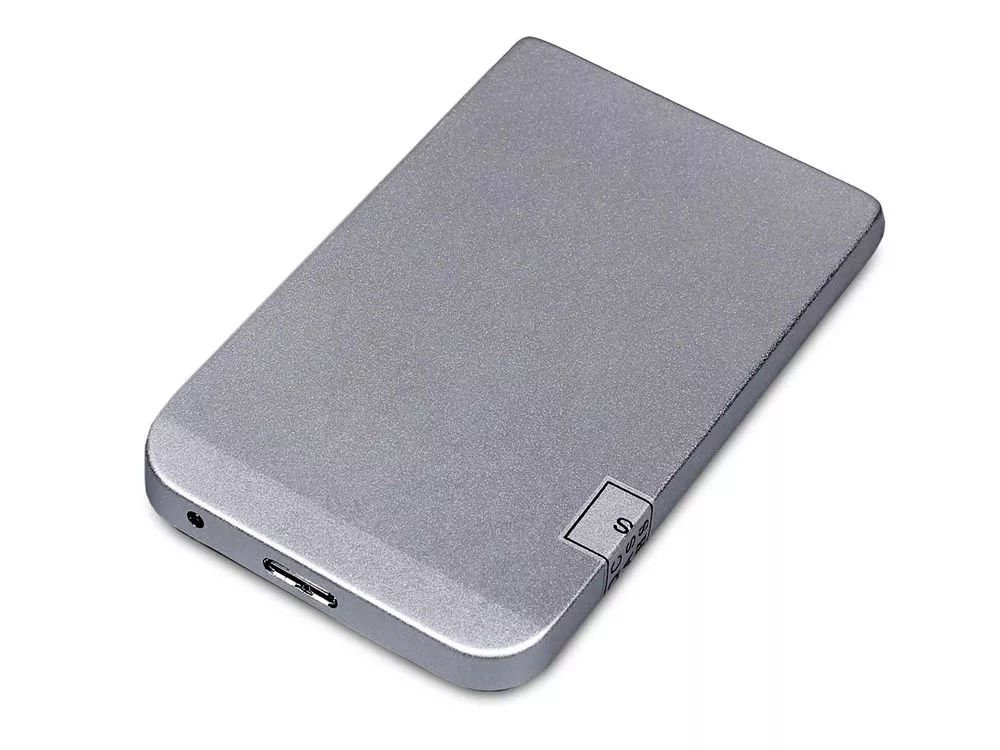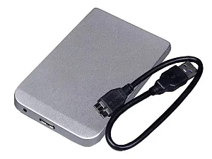 Внешний жесткий диск Saturn, объем памяти 500 GB. Металлический корпус.