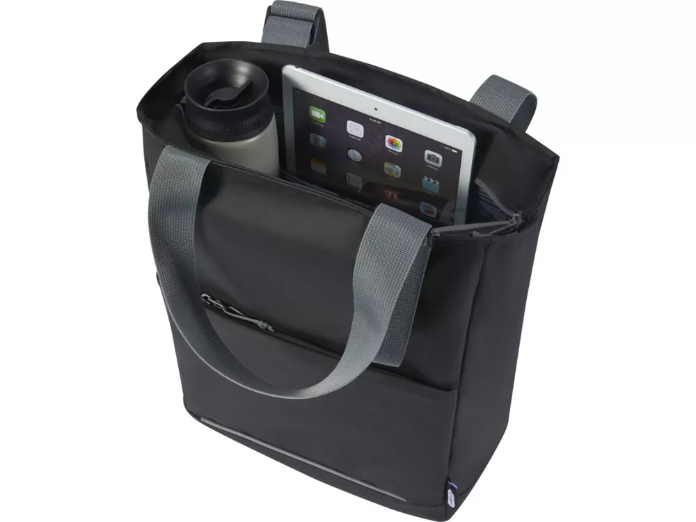 Водонепроницаемая эко-сумка для ноутбука, изготовленная из переработанных материалов согласно стандарту GRS, включая молнии. Имеет специальное отделение для планшета, отделение для ноутбука с диагональю экрана 14 дюймов, несколько карманов для хранения разных предметов, передний карман с органайзером, регулируемые ручки длиной 35 см и ремешок для багажа. Из переработанных материалов, сертифицированных по стандарту GRS, изготовлены основная ткань, подкладка, лямки и застежки-молнии. Емкость: 14 литров. Не содержит ПВХ.