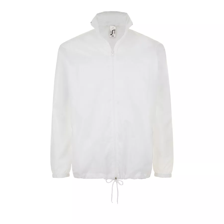 Легкая ветровка унисекс с облегченной пластиковой молнией. Воротник с убирающимся капюшоном. Эластичные манжеты на резинке.
