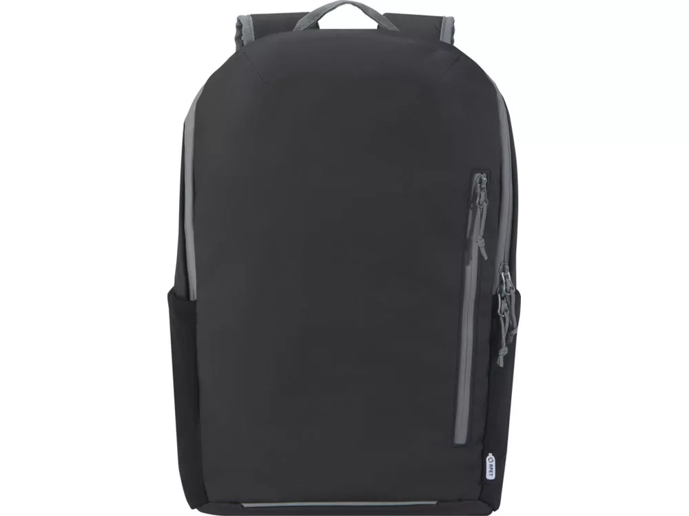 Водонепроницаемый рюкзак для ноутбука, изготовленный из переработанных материалов, сертифицированных согласно стандарту GRS, включая застежки-молнии. Имеет отделение с подкладкой, в которое помещается ноутбук с диагональю 15 дюймов, боковое отверстие для быстрого доступа, несколько сетчатых карманов, передний карман на молнии, а также светоотражающую окантовку для видимости. Формованная мягкая спинка и регулируемый нагрудный ремень обеспечивают комфорт даже тогда, когда рюкзак полностью загружен. Из переработанных материалов, сертифицированных по стандарту GRS, изготовлены основная ткань, подкладка, лямки и застежки-молнии. Емкость: 21 литр. Не содержит ПВХ.