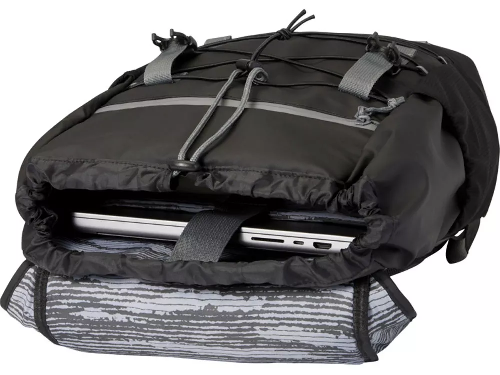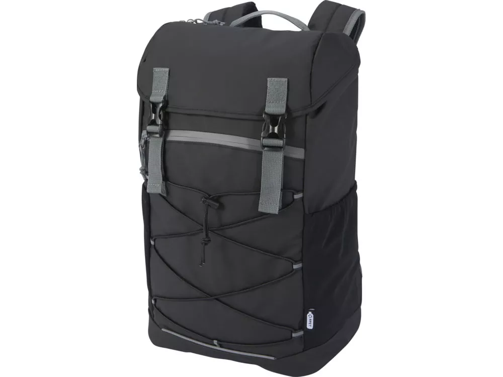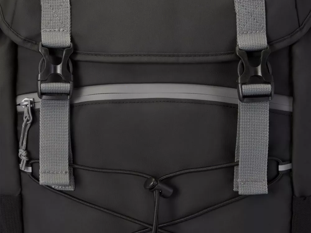 Водонепроницаемый рюкзак для ноутбука, изготовленный из переработанных материалов, сертифицированных согласно стандарту GRS, включая застежки-молнии. Имеет просторное отделение для ноутбука с диагональю экрана 15,6 дюйма со шнуром, а также регулируемые пряжки, чтобы максимально увеличить пространство для хранения под откидной крышкой. Этот рюкзак имеет несколько карманов, в том числе передний карман на молнии с эластичными кулисками для хранения и организации, а также светоотражающую окантовку для видимости. Формованная мягкая спинка и регулируемый нагрудный ремень обеспечивают комфорт даже тогда, когда рюкзак полностью загружен. Из переработанных материалов, сертифицированных по стандарту GRS, изготовлены основная ткань, подкладка, лямки и застежки-молнии. Емкость: 23 литра. Не содержит ПВХ.