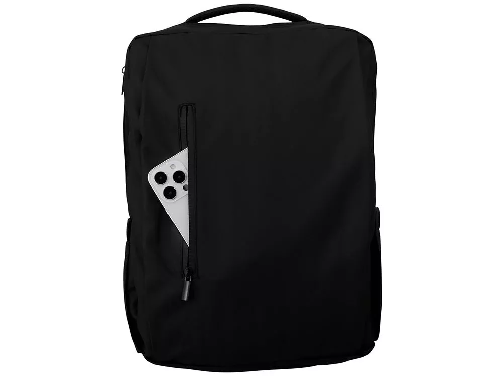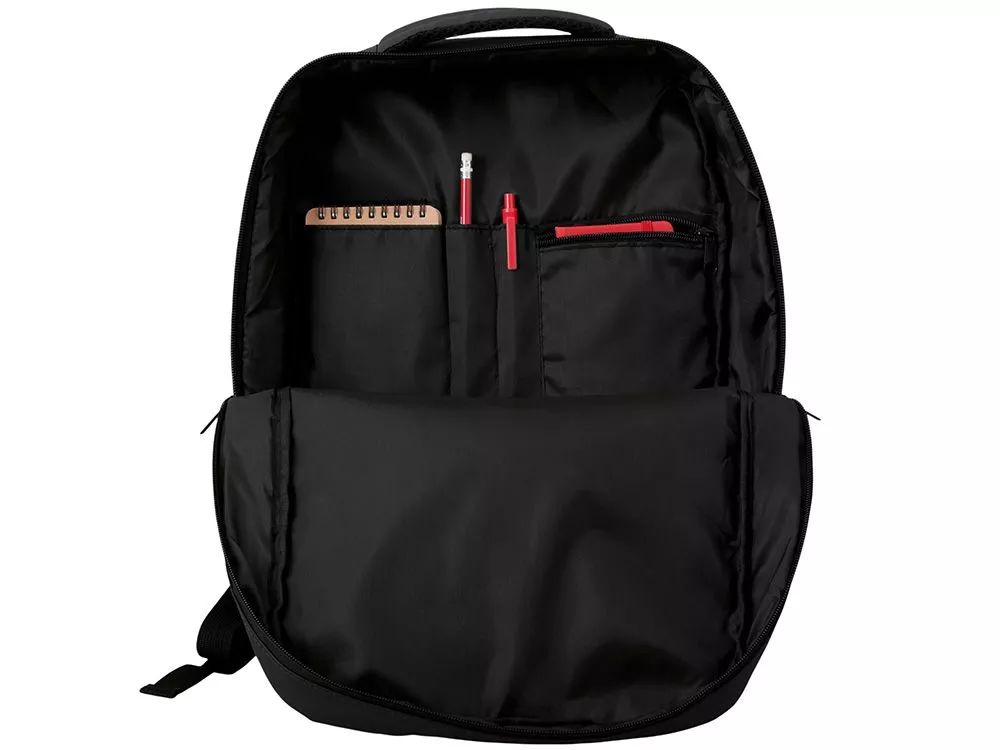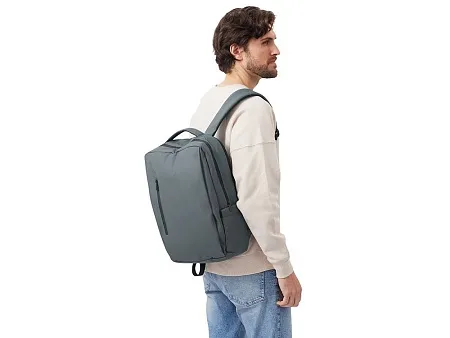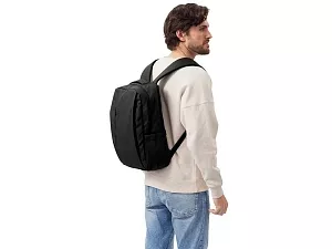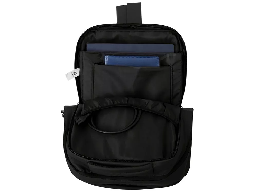 Непромокаемый бизнес рюкзак с двумя вместительными отделениями и карманом на молнии спереди. В одном отделении расположены карман для ноутбука и планшета, в другом органайзер и много пространства для одежды и других вещей на случай деловой поездки. На сетчатой спинке расположен потайной кармана на молнии для документов и личных вещей и ремень для крепления на ручку чемодана. Сверху удобная мягкая ручка для переноски. Лямки регулируются по длине.