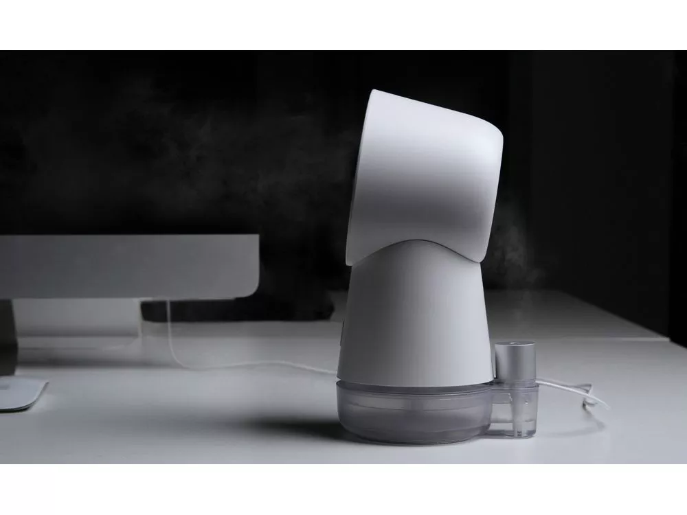Rombica Flow Vortex. Вентилятор портативный безлопастной со встроенным увлажнителем. — безопасный обдув, — лампа подсветки, — увлажнитель 40 мл/ч.