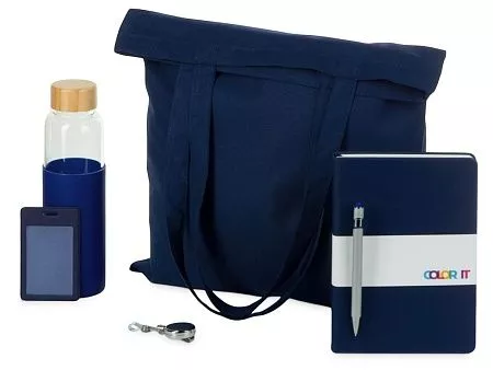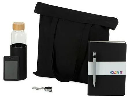 Welcome pack для нового сотрудника, в который входит все самое необходимое для комфортной адаптации в новом офисе: блокнот с магнитным держателем для ручки и карманом для визиток, ручка, чехол для пропуска с ретрактором, стеклянная бутылка для воды и шоппер. На все товары в наборе можно нанести ваш лого. Трафаретная печать (1 цвет (лучшая цена!) *) на данный товар осуществляется бесплатно. Оплачивается только настройка оборудования в размере 8200 рублей на весь тираж.