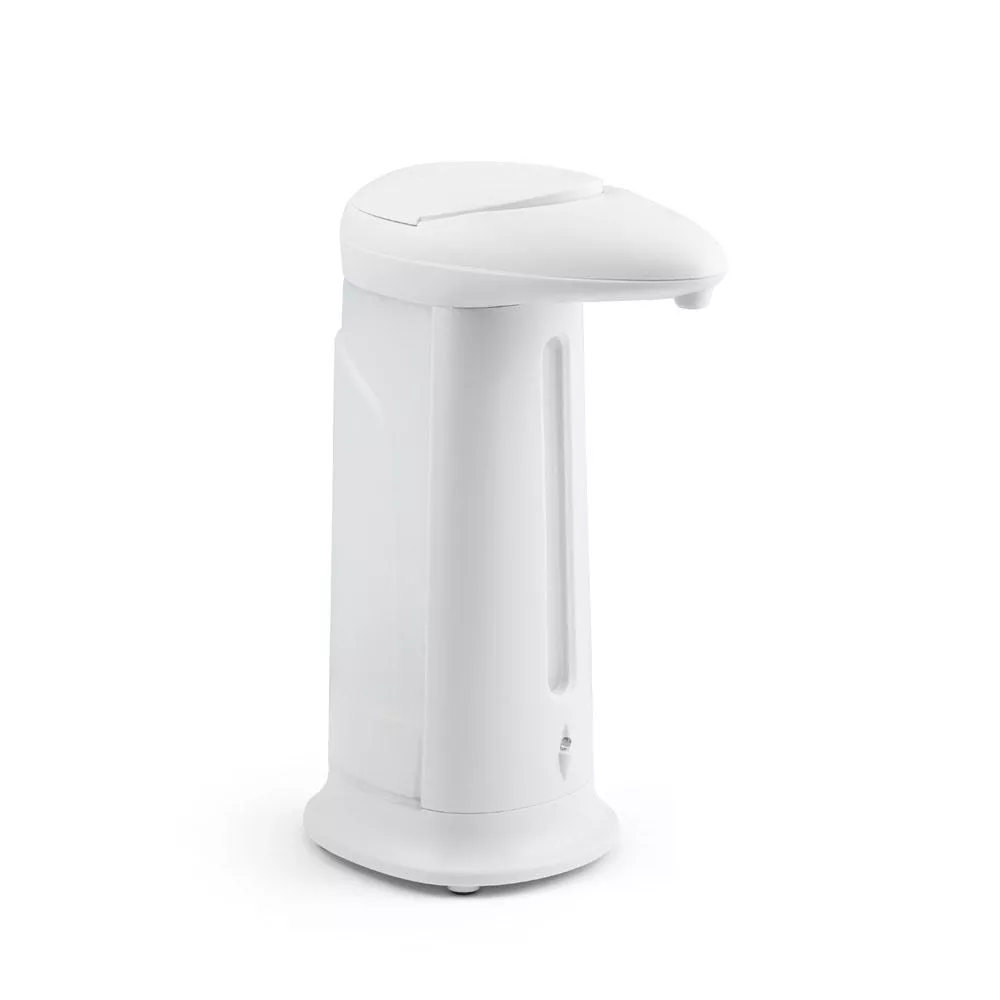 Автоматический дозатор мыла и гигиенических средств из ABS и PP с инфракрасным датчиком движения с белым светодиодом внутри контейнера и емкостью 330 мл (мыло или дезинфицирующее средство в комплект не входят). В комплекте 4 батарейки AAA. Поставляется в коробке. 123 x 195 x 83 мм