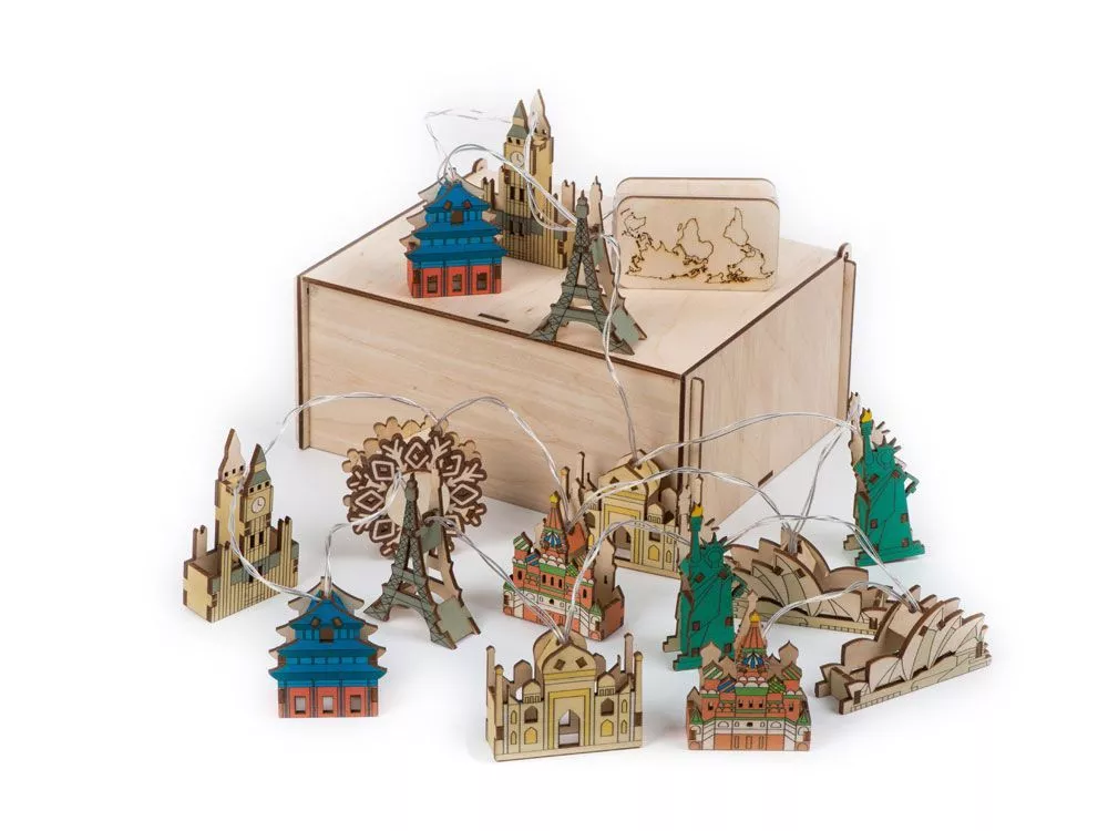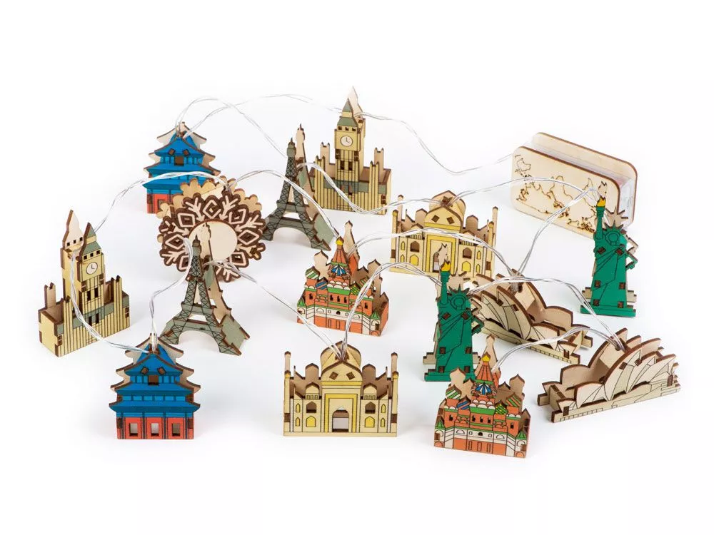 Ёлочная гирлянда с лампами в подарочной коробке Достопримечательности мира