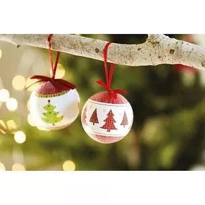 Ёлочная игрушка в жемчужной отделке с лентой. Индивидуальная подарочная коробка в том же дизайне.