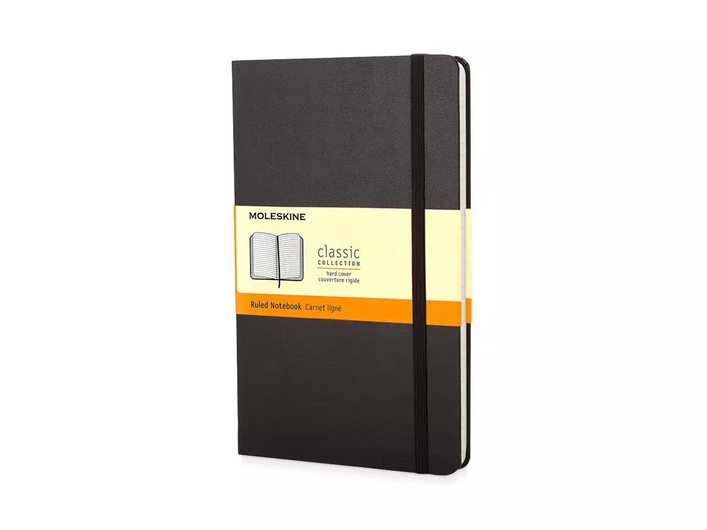 Эта простая, но уже ставшая классикой записная книжка является одним из самых популярных изделий Moleskine.Этот надежный спутник, идеально подходящий для записи мыслей, идей и заметок, выполнен в картонной обложке со скругленными углами, с листами в линейку из бескислотной бумаги, закладкой, эластичной застежкой и вместительным внутренним карманом, куда вложена открытка с историей Moleskine.