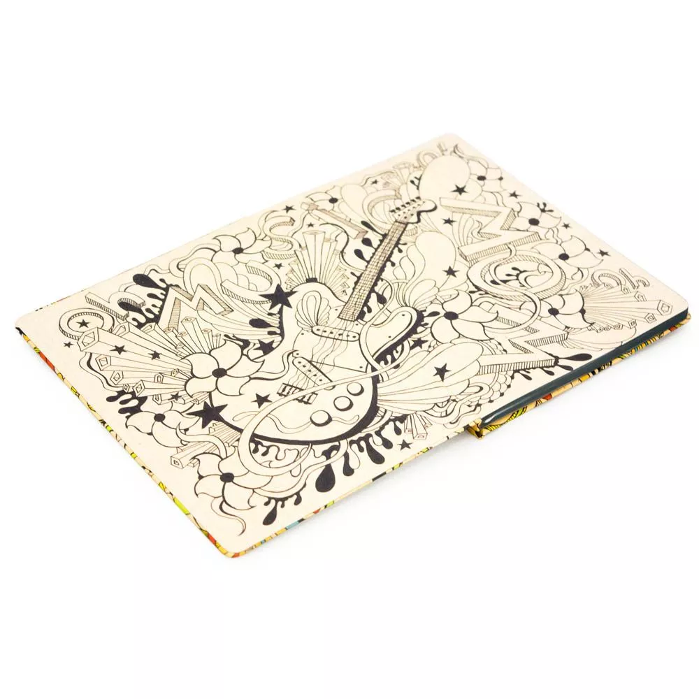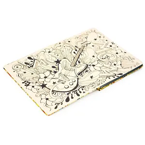 Отличное настроение и любимая музыка – эти вещи неразрывно связаны! Веселый, летний блокнот с музыкальной гитарой на обложке дополнит вашу коллекцию стильных и милых вещей! Попробуйте раскрасить индивидуальный форзац блокнота в любимые цвета! И непременно запишите в нем свои самые важные мысли и планы!