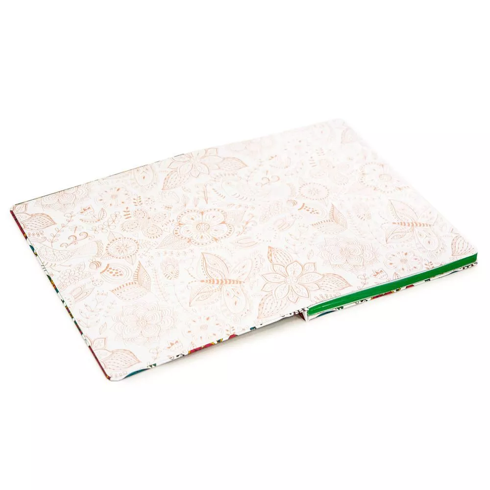 Теплый летный день, цветы, птицы, бабочки. Прекрасное летнее настроение обеспечено при одном только взгляде на этот яркий блокнот. Бархатный ламинат обложки, оригинальный форзац под раскраску, ляссе в тон. Фантазируйте, размышляйте и записывайте свои мысли по любому поводу в этот стильный и милый блокнот.