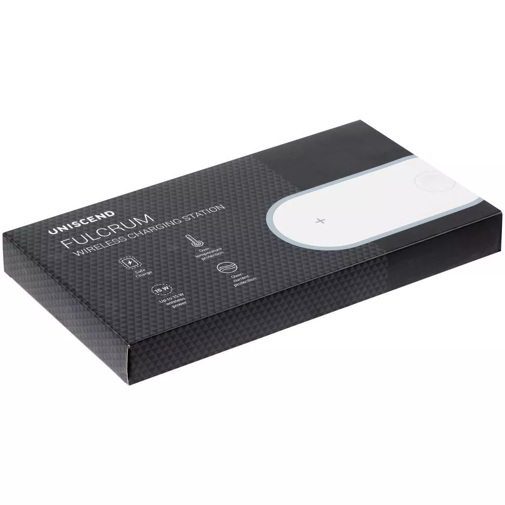 Большая область нанесения, матовая фактура пластика, на которой не так заметны царапины и потертости, возникающие при эксплуатации — все это делает зарядную станцию Fulcrum полезным и оригинальным подарком.