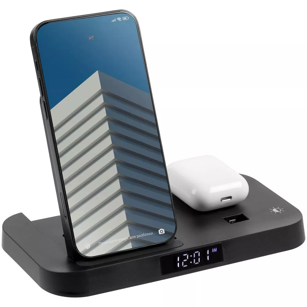 Зарядная станция совместима со всеми смартфонами, поддерживающими технологию беспроводной зарядки Qi. Также предусмотрено место для зарядки часов Apple Watch и наушников. Зарядка начнется автоматически при размещении устройств на индукционной площадке.