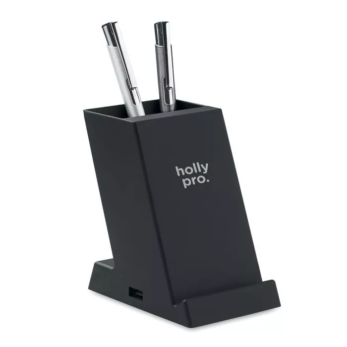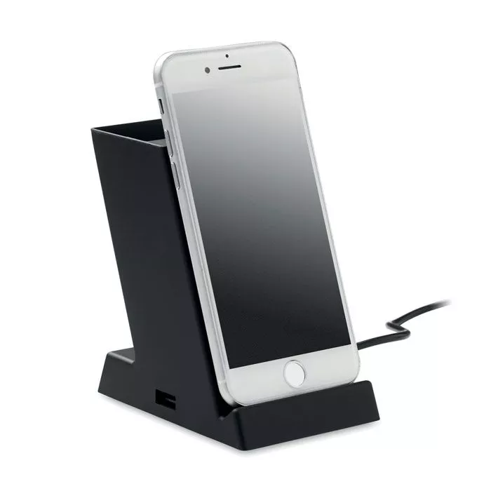 Беспроводное зарядное устройство из пластика мощностью 15 Вт с держателем для ручек. Выход: DC 9V/1.67A (15W) для быстрой зарядки. Совместимо с последними моделями Androids, iPhone® 8, X и новее