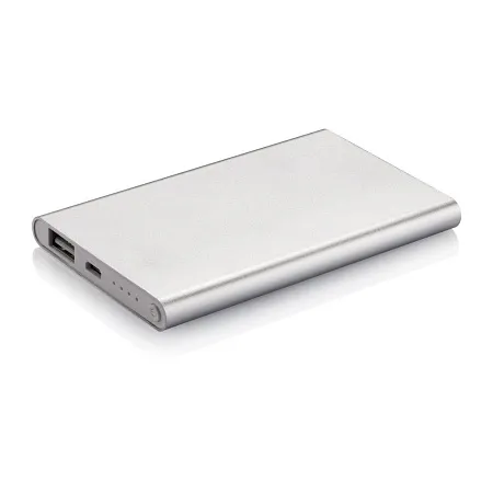 Тонкое зарядное устройство в прочном алюминиевом корпусе со встроенным литий полимерным аккумулятором емкостью 4000 mAh. На корпусе расположена кнопка вкл/выкл и индикаторы уровня заряда. Поставляется в подарочной коробке. Максимальная мощность на выходе 5V/1А, на входе: 5V/800 mAh. В комплекте кабель micro-USB.