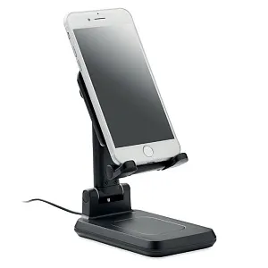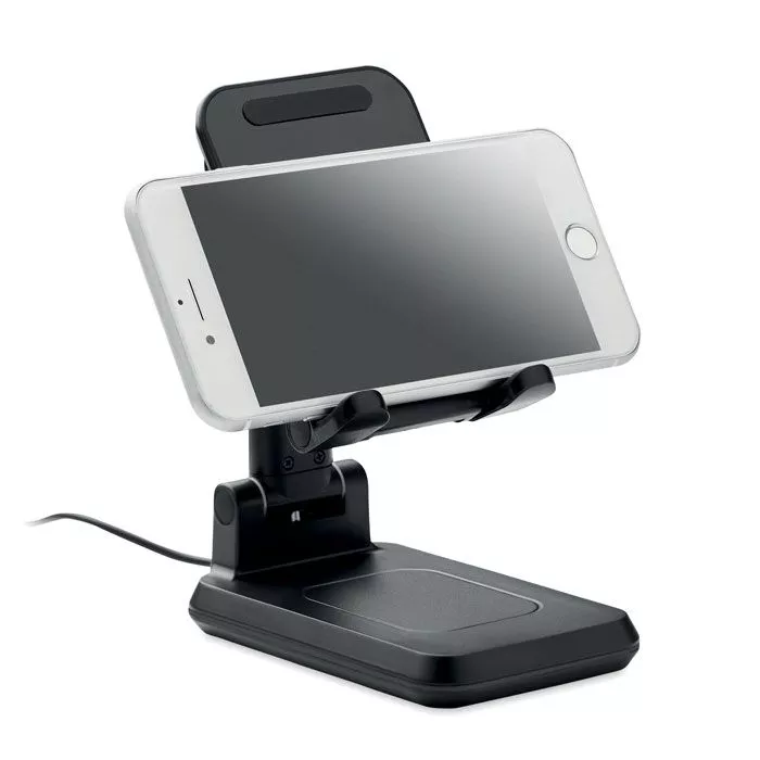 Беспроводное зарядное устройство 15 Вт из пластика с выдвижным и складным держателем для смартфона и подставкой. Выход: DC 9V/1.67A (15W) для быстрой зарядки. Совместимо с последними моделями Androids, iPhone® 8, X и новее.