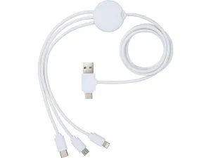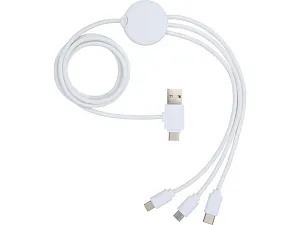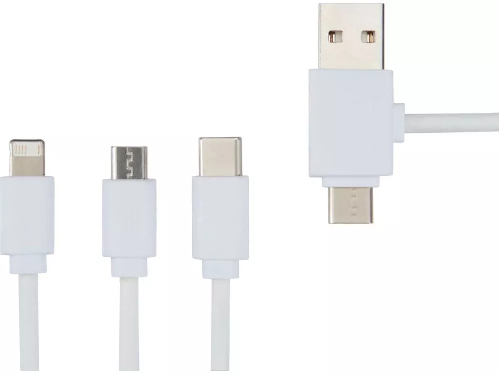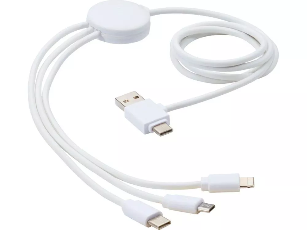 Зарядный кабель с противобактериальной присадкой и 5 разными разъемами: Вход Тип-C, вход USB-A, выход Тип-C, выход iOS и выход micro USB. С возможностью использования кабеля с устройствами с выводом Тип-C, которым оснащены телефоны и компьютеры MacBook нового поколения. Длина кабеля составляет 100 см. Противобактериальная присадка способна эффективно снижать уровень бактерий, присутствующих на поверхности материала, с высокой эффективностью подавляя рост бактерий и грибков, создающих неприятные запахи, приводящих к окрашиванию и деградации текстильных и пластиковых изделий. Протестировано в соответствии с ISO 20743:2013. ПВХ, Пластик ABS.