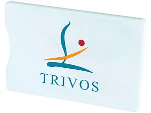 Защитный RFID чехол для кредитной карты. Защитный чехол надежно защитит вашу карту от несанкционированных транзакций, так как в нем есть электромагнитное поле. Чехол с защитой RFID также достаточно тонкий, так что вы можете держать его в бумажнике, сумочке или в кармане. Большое место для нанесения. Пластик.
