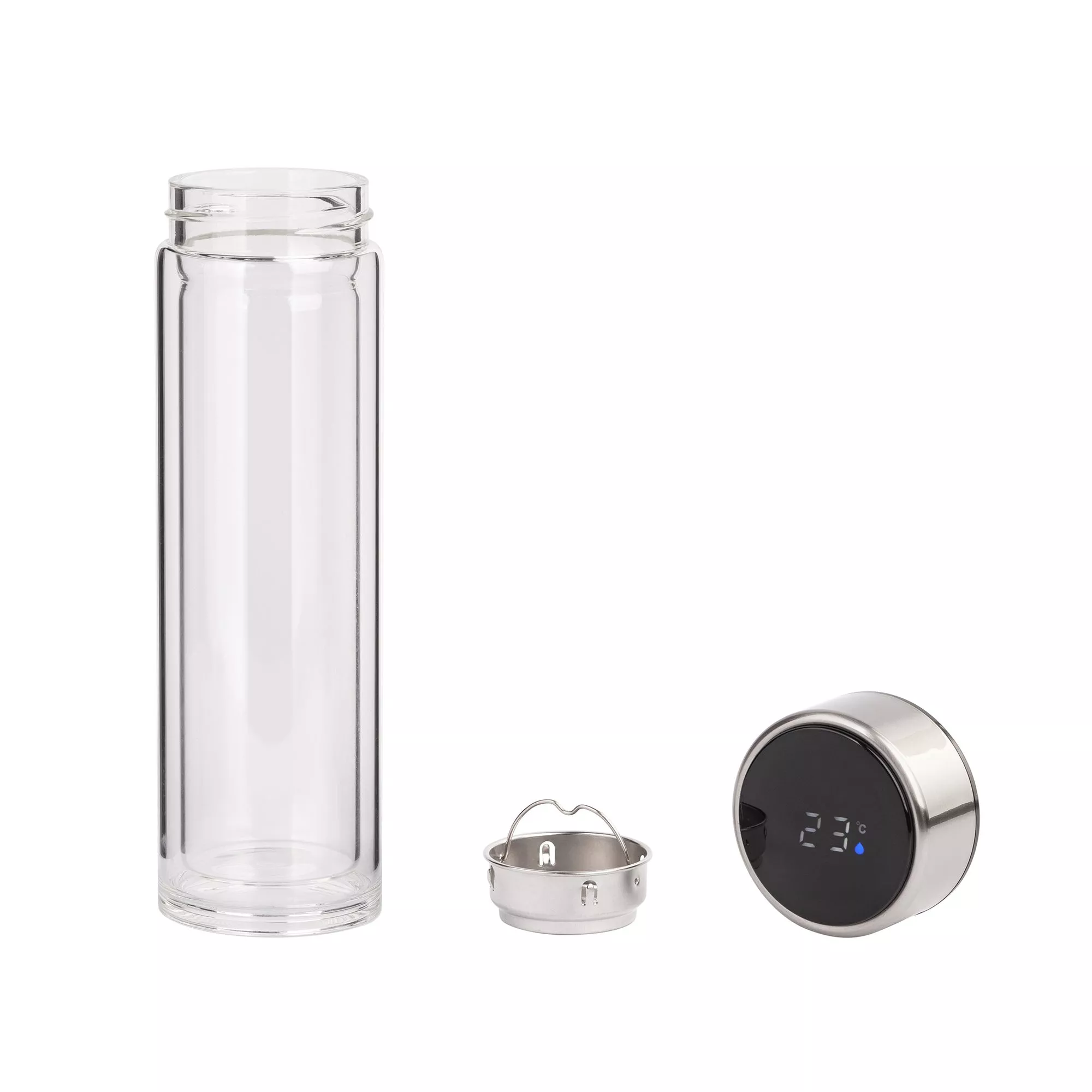 Заварочный термос "Остин" на 320 мл с двойной колбой из боросиликатного стекла - современный аксессуар, который удобно взять с собой на прогулку, в поездку или отдых. Неопреновая сумка-чехол не только защищает колбу, но и улучшает её температурные характеристики. Пользователям понравится герметичная крышка с дисплеем для контроля температуры содержимого. Чай или кофе удобно заваривать прямо в термосе, в жаркую погоду можно использовать его под освежающий коктейль или цитрусовую воду. В комплекте есть съемное сито из 304 стали для фильтрации содержимого.