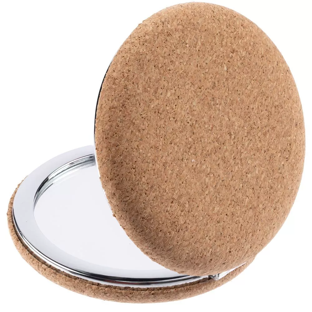 Двойное зеркало в корпусе из пробки на магните: обычное и увеличивающее.
