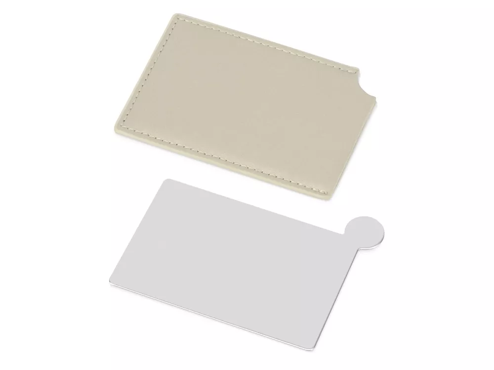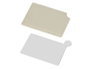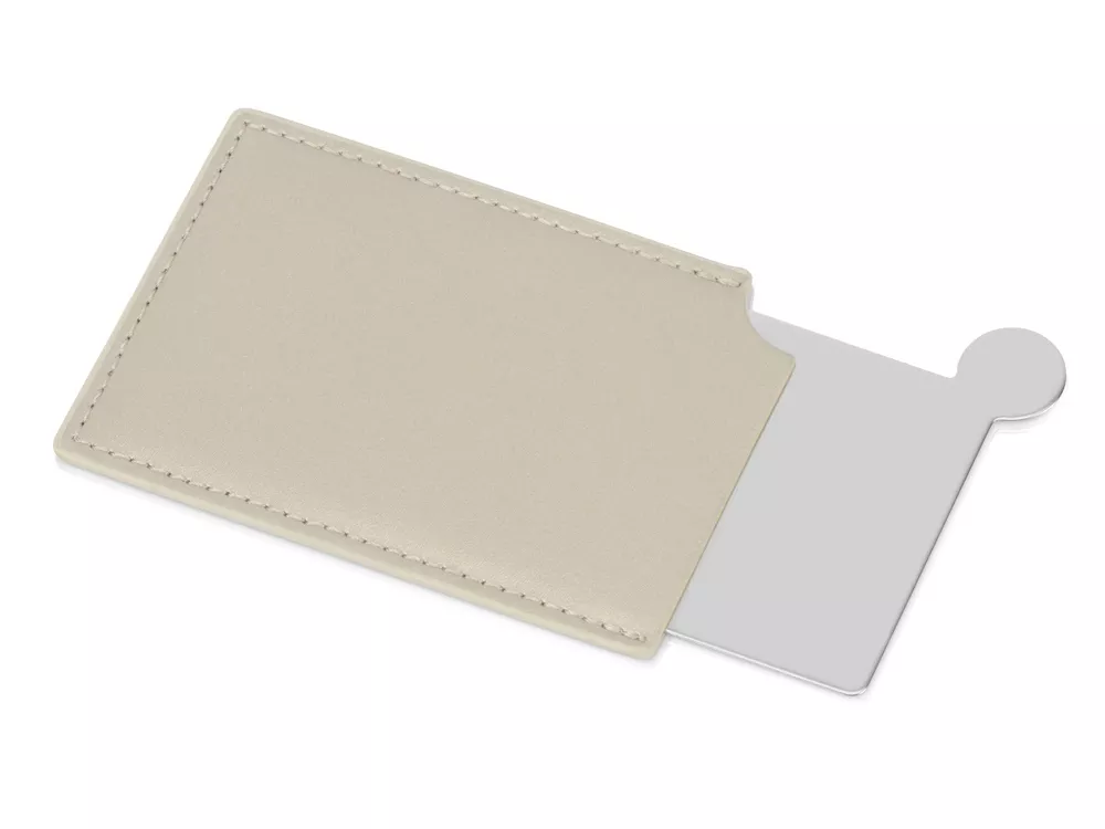 Оригинальное зеркало в чехле из искусственной кожи толщиной всего 3 мм легко поместится не только в сумке, но и в кармане или небольшом органайзере. Выполнено из металлического сплава и отполировано. Такое зеркало никогда не разобьётся. Надпись или логотип можно нанести как на чехле, так и на самом зеркале.