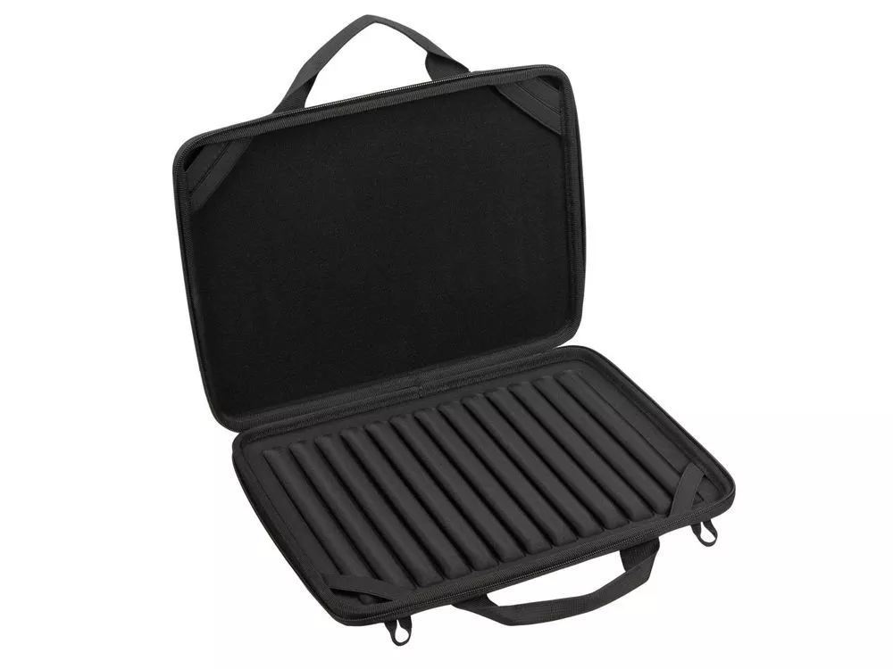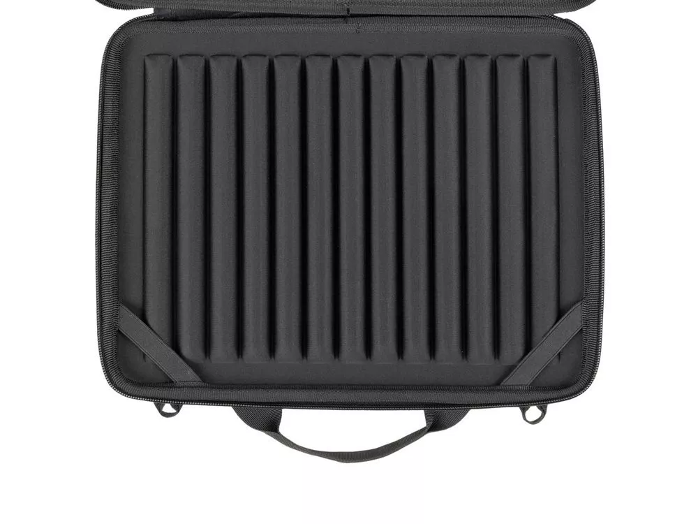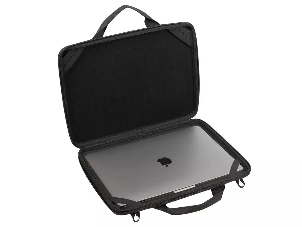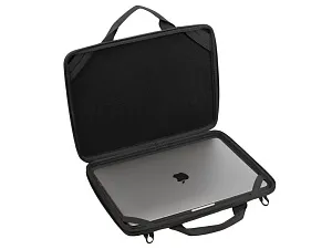 Жесткий чехол для ноутбуков.• Чехол создан из высококачественного, водоотталкивающего материала EVA, он надежно защищает от внешних воздействий, случайных ударов и царапин, а также от пыли и влаги. • Внутри дно оборудовано специальными накладками для защиты ноутбука, его рифленая форма обеспечивает хорошую вентиляцию и снижает нагрев устройства при работе в чехле. • В комплекте ремень для ношения чехла на плече. • Ноутбук надежно крепится внутри чехла специальными фиксирующими лентами по углам. • Двойная застежка молния для удобного доступа к устройству. Совместимость: Chromebook 11.6-12.4 / MacBook Air 13 / MacBook 14