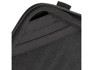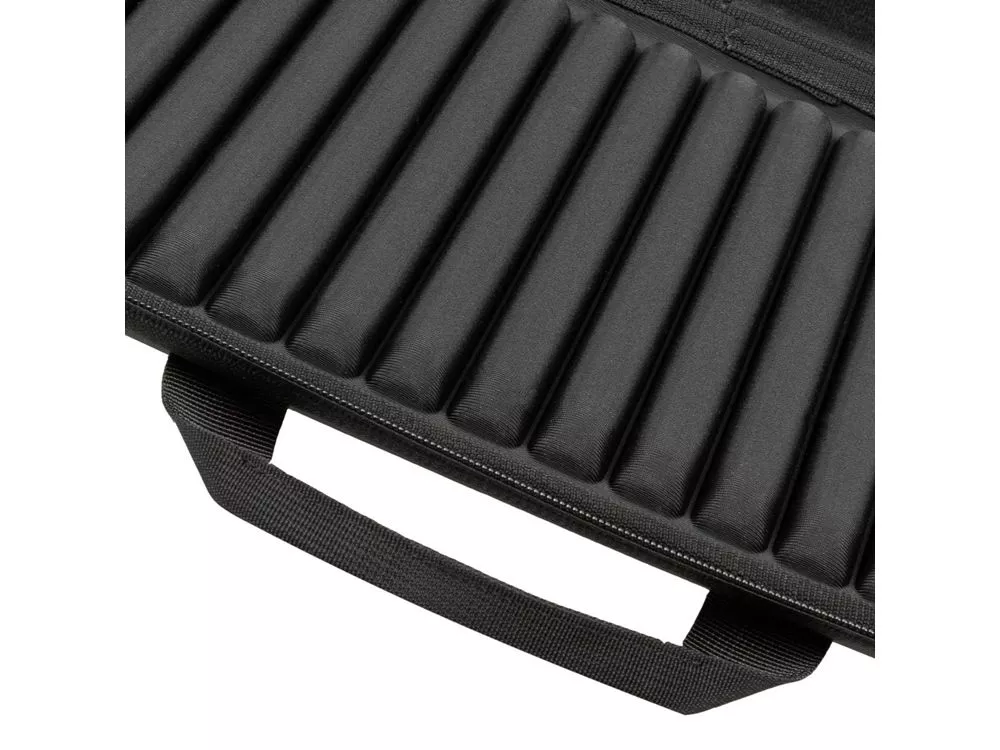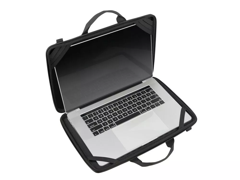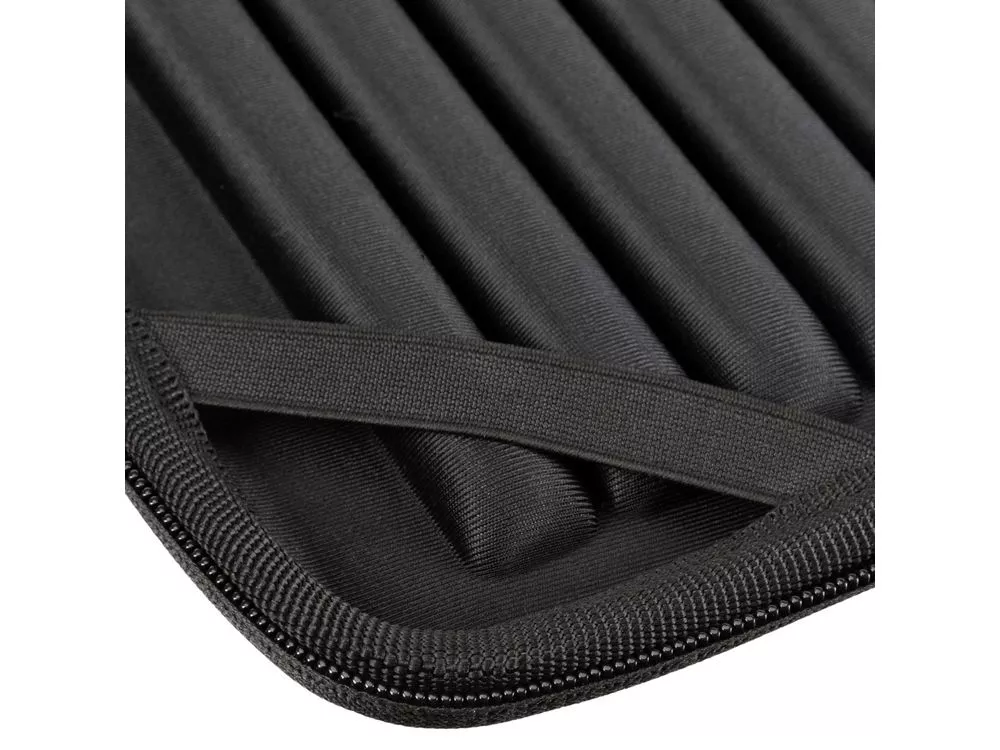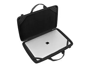 Жесткий чехол для ноутбуков. • Чехол создан из высококачественного, водоотталкивающего материала EVA, он надежно защищает от внешних воздействий, случайных ударов и царапин, а также от пыли и влаги. • Внутри дно оборудовано специальными накладками для защиты ноутбука, его рифленая форма обеспечивает хорошую вентиляцию и снижает нагрев устройства при работе в чехле. • В комплекте ремень для ношения чехла на плече. • Ноутбук надежно крепится внутри чехла специальными фиксирующими лентами по углам. • Двойная застежка молния для удобного доступа к устройству. Совместимость: Ноутбуки 15.6