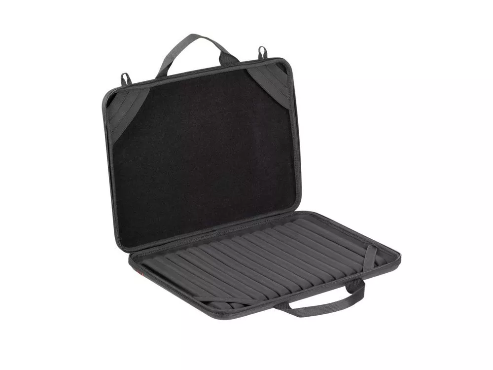 • Чехол создан из высококачественного, водоотталкивающего материала EVA, он надежно защищает от внешних воздействий, случайных ударов и царапин, а также от пыли и влаги. • Внутри дно оборудовано специальными накладками для защиты ноутбука, его рифленая форма обеспечивает хорошую вентиляцию и снижает нагрев устройства при работе в чехле. • В комплекте ремень для ношения чехла на плече. • Ноутбук надежно крепится внутри чехла специальными фиксирующими лентами по углам. • Двойная застежка молния для удобного доступа к устройству.