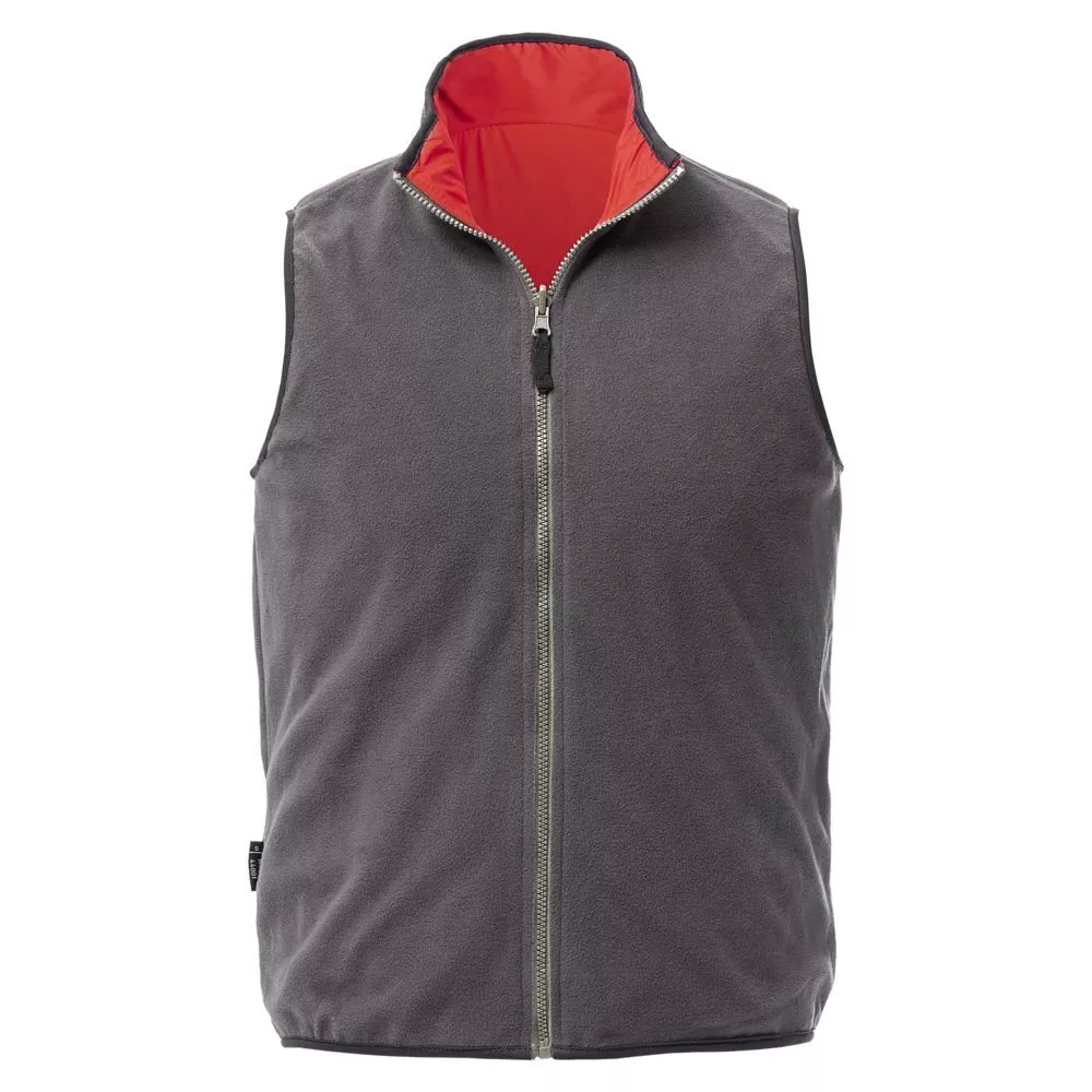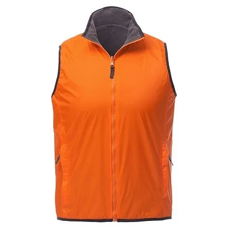 Сверху нейлон с водостойкой пропиткой, внутри - флис. А можно и наоборот. Жилет ведь двусторонний. Для удобства нанесения логотипа можно частично отстегнуть подкладку.