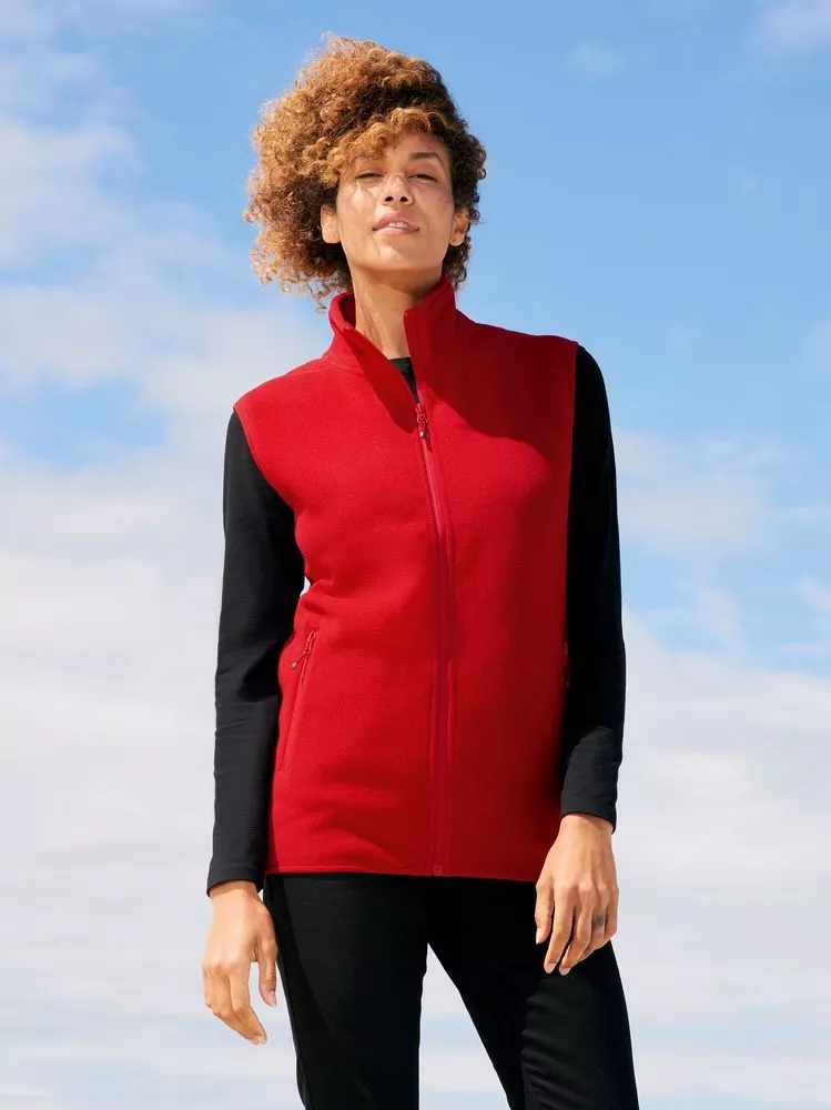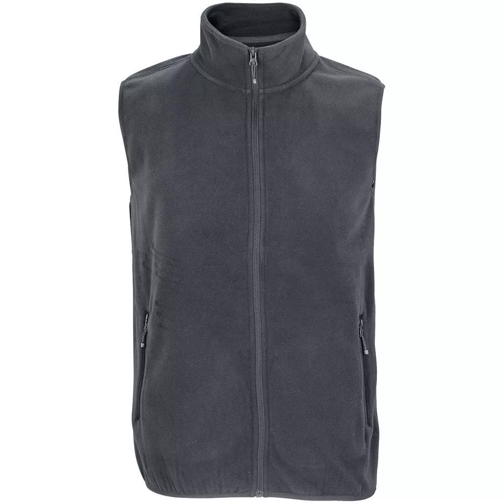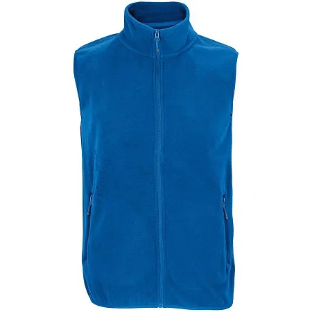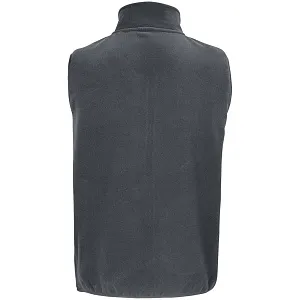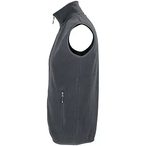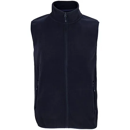 Флисовый жилет унисекс с воротником-стойкой. Застежка-молния в тон, боковые карманы на молнии. Укрепляющая тесьма по вороту. Отделка эластичной лентой по низу и проймам.