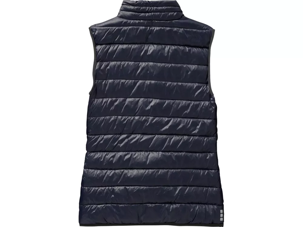 Женская пуховая жилетка Fairview. Стандартный покрой. Ткань не пропускает пух. Карманы для рук и нагрудный на молнии. Внутренний противоветровой клапан и защита подбородка. Эластичная обшивка внизу и на проймах. Ткань дышащая, ветронепроницаемая и влагоотталкивающая. Отражающий лого сзади. Ремешки на собачку (второй комплект в цвете антрацит). Жилет - версия победителя премии Reddot, куртки Scotia. Ткань из 100% нейлона с матовым и блестящим водоотталкивающим покрытием, 20D. 80% пух и 20% перо.