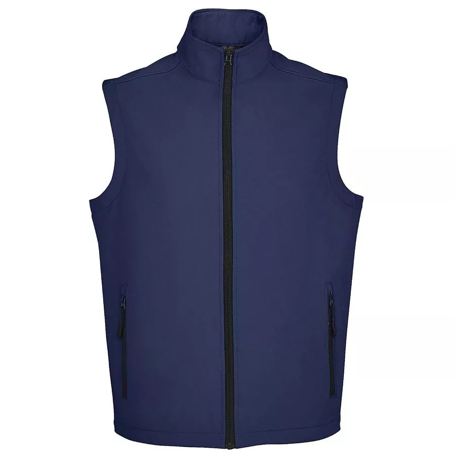 Мужской жилет из материала софтшелл с водоотталкивающими свойствами (вода скатывается c поверхности ткани). Флис с внутренней стороны изделия сохраняет тепло. Два кармана на молнии с подкладкой "сетка" для большей вентилируемости.
