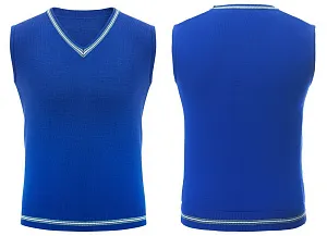 Жилет с вывязанным логотипом и индивидуальным рисунком в фирменной цветовой гамме.