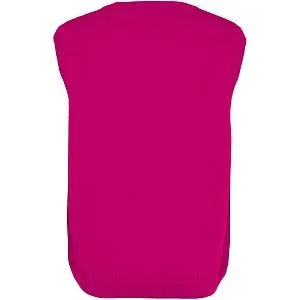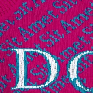 Жилет оверсайз с вывязанным логотипом и индивидуальным рисунком в фирменной цветовой гамме.
