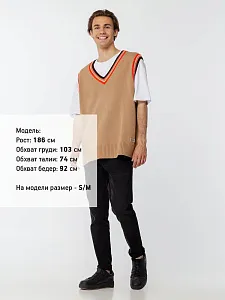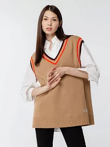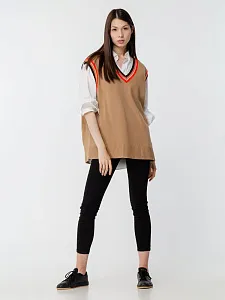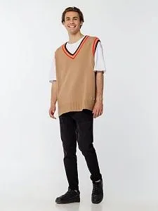 Оверсайз жилет с V-образным вырезом и цветной отделкой.
