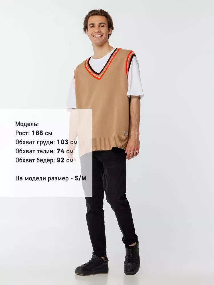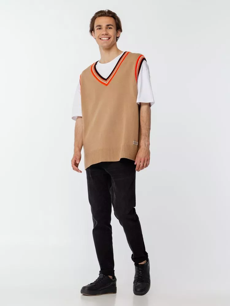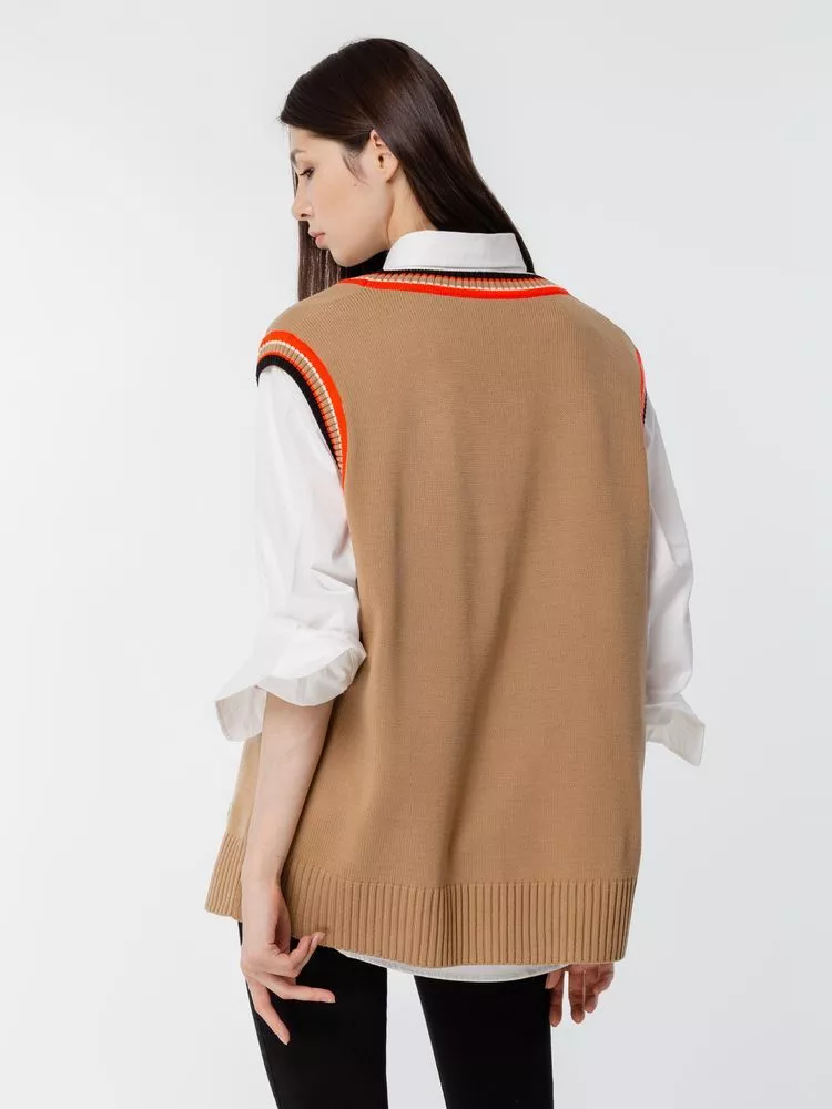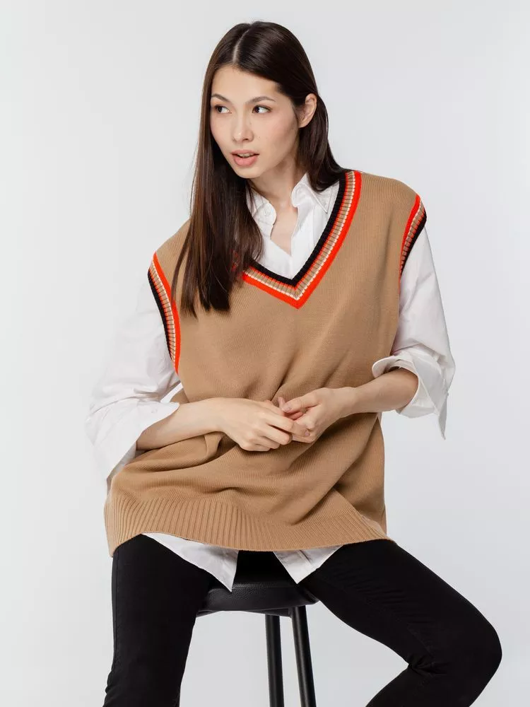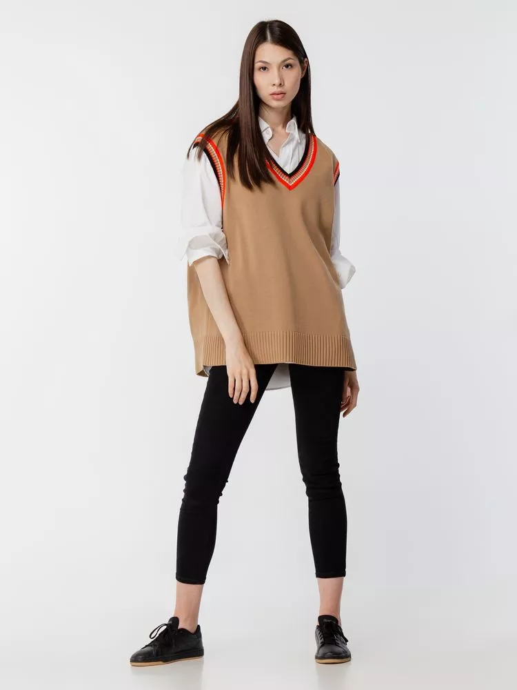 Оверсайз жилет с V-образным вырезом и цветной отделкой.
