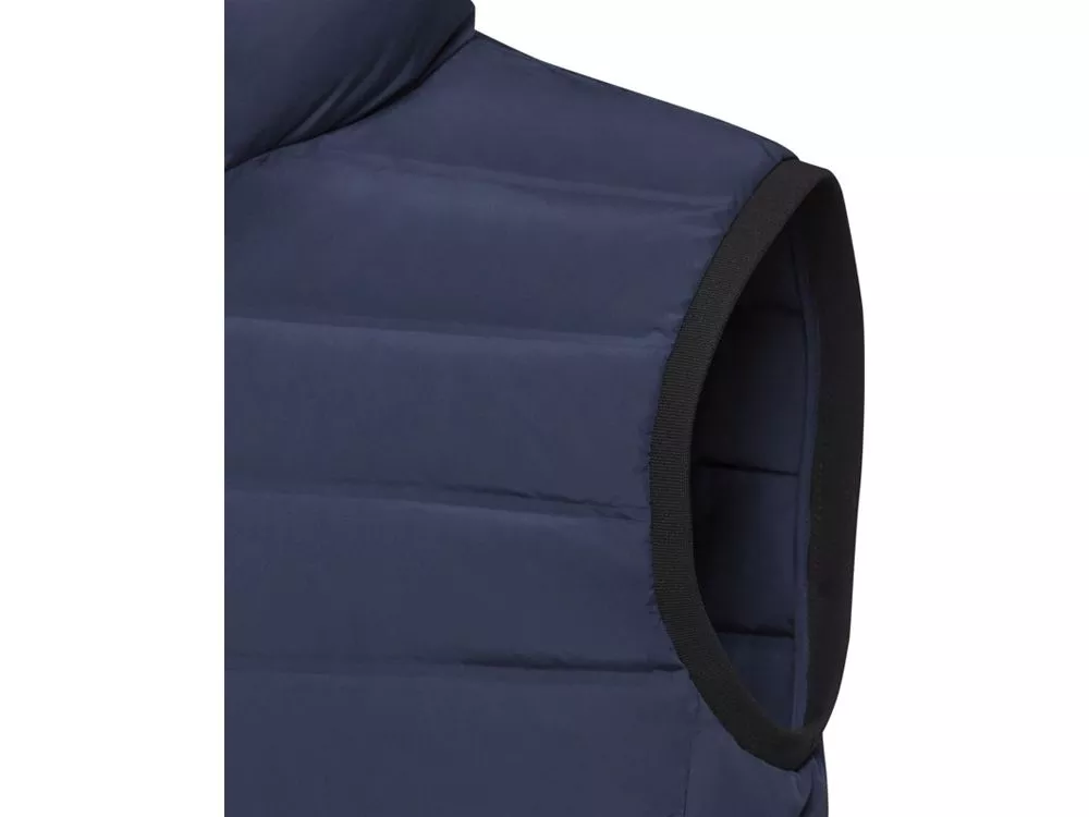 Стежка с утеплителем. Утеплитель из переработанного пуха, сертифицированного согласно GRS и RDS. Внутренний штормовой клапан с защитой подбородка. Эластичные манжеты и нижний край из гладкого трикотажа. Передние карманы с застежкой-молнией. Бегунки застежки-молнии с простой фиксацией. Фирменная резиновая петля для вешалки. Главный лейбл нанесен методом термоприклеивания, удобным для размещения рисунков на ткани.