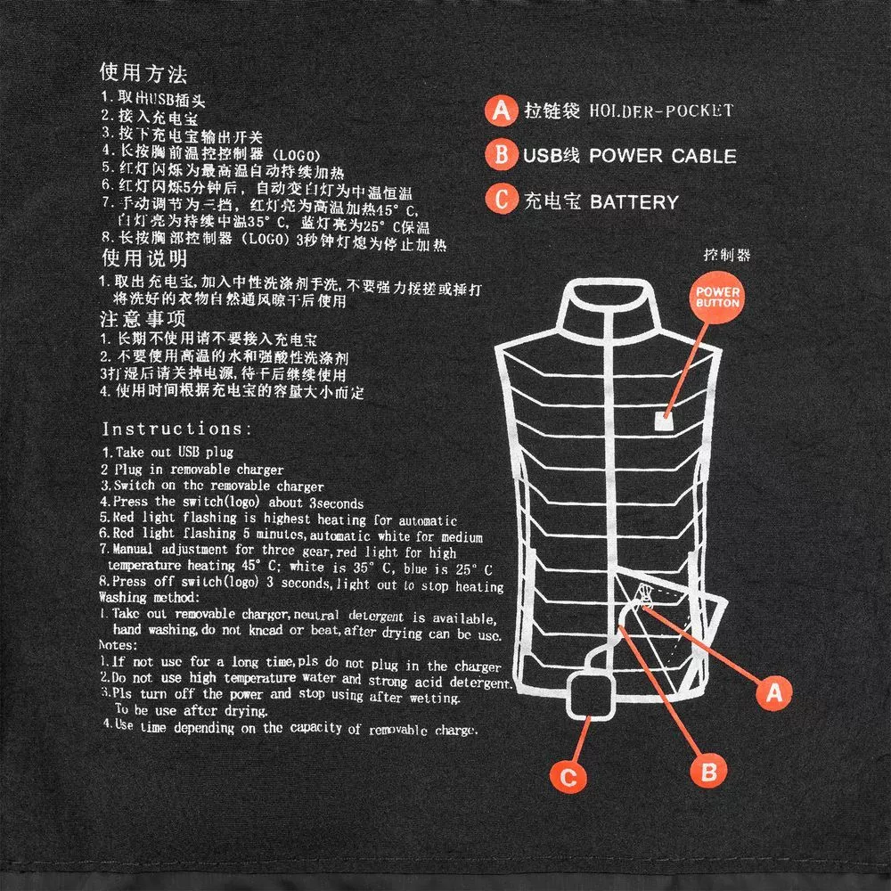 Утепленный жилет со встроенным нагревательным элементом из углеродного волокна в области спины и шеи. Работает от внешнего аккумулятора (в комплект не входит) и подарит ощущение комфорта в любую погоду.