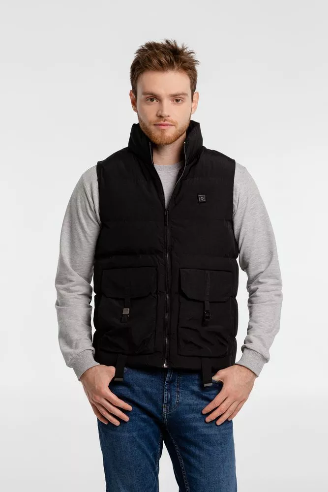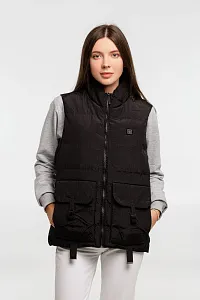 - Утепленный жилет на молнии с воротником стойкой и 2 наружными карманами