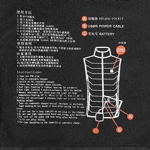 1. Подключите внешний аккумулятор к кабелю во внутреннем кармане куртки.
