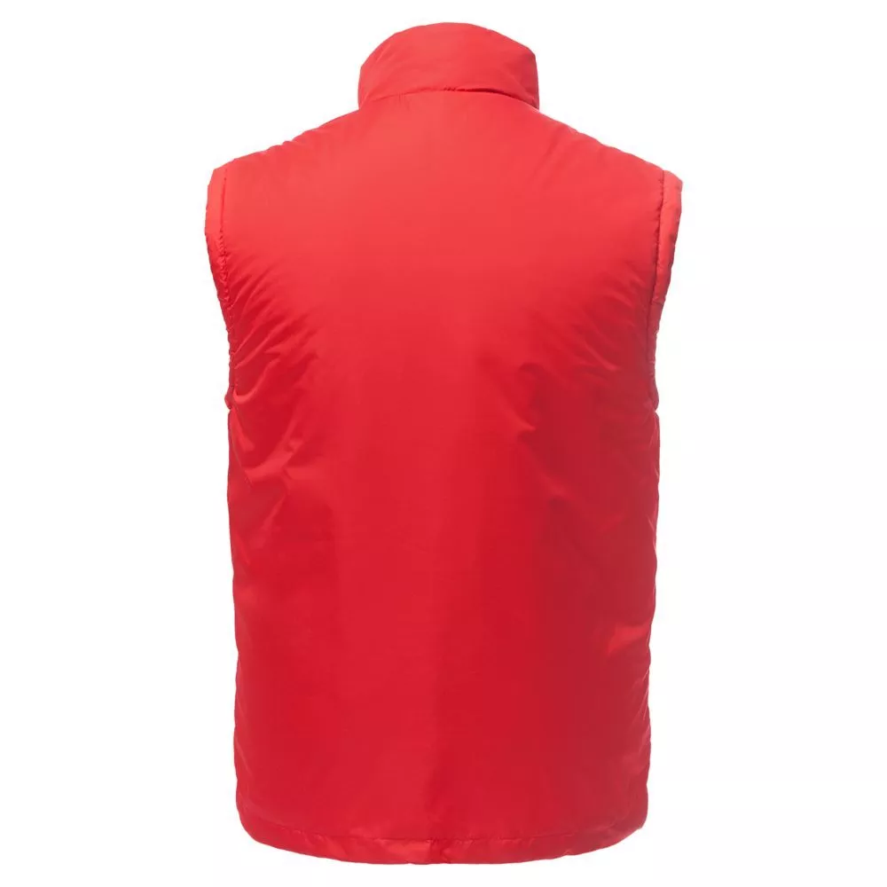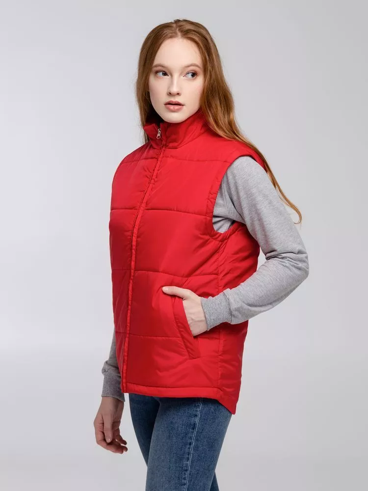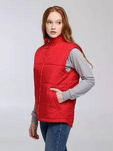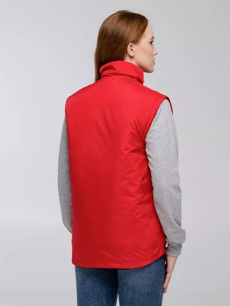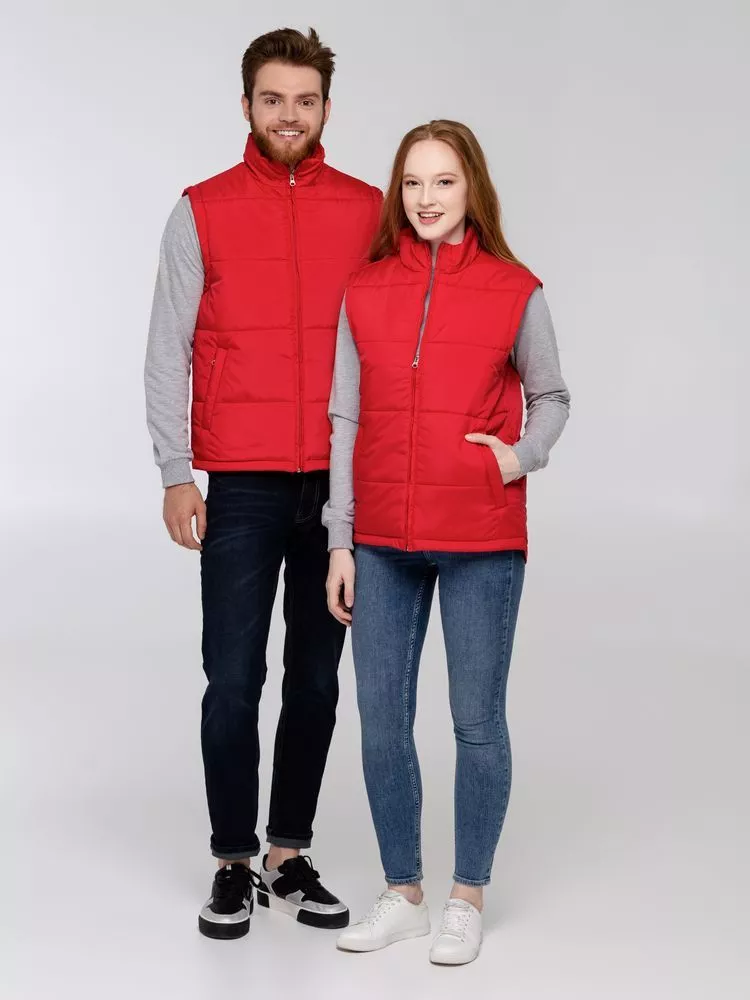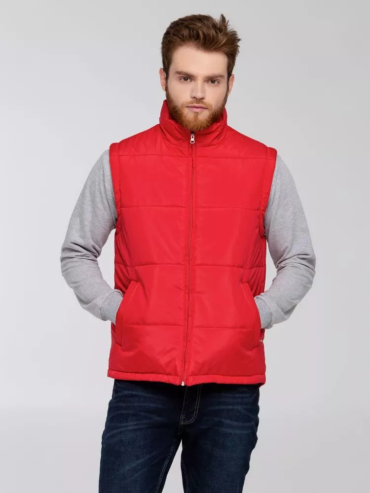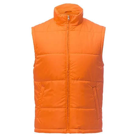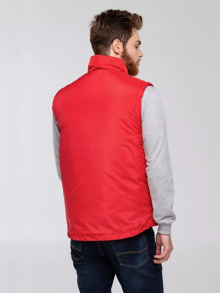 Воротник-стойка, скругленный низ, два наружных кармана на молнии и один внутренний на липучке. Застежка-молния в тон жилета. Для удобства нанесения логотипа можно частично отстегнуть подкладку.
