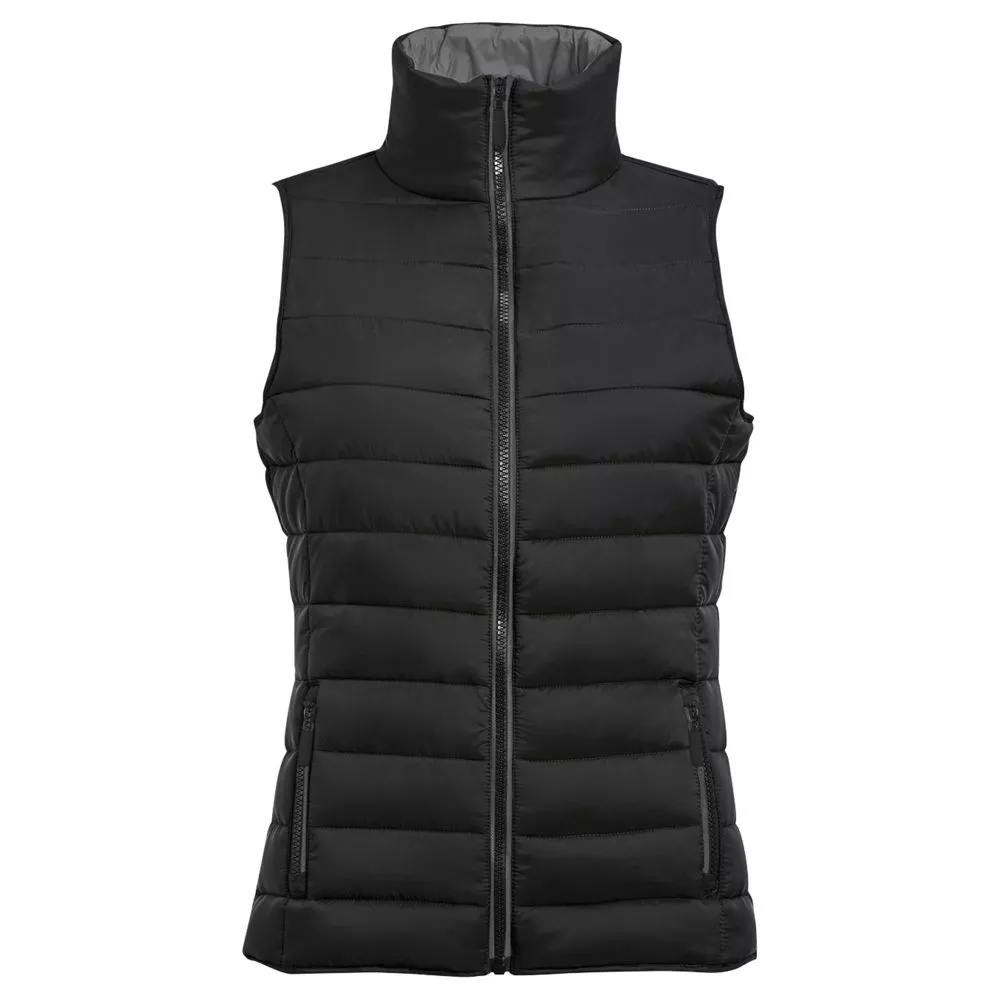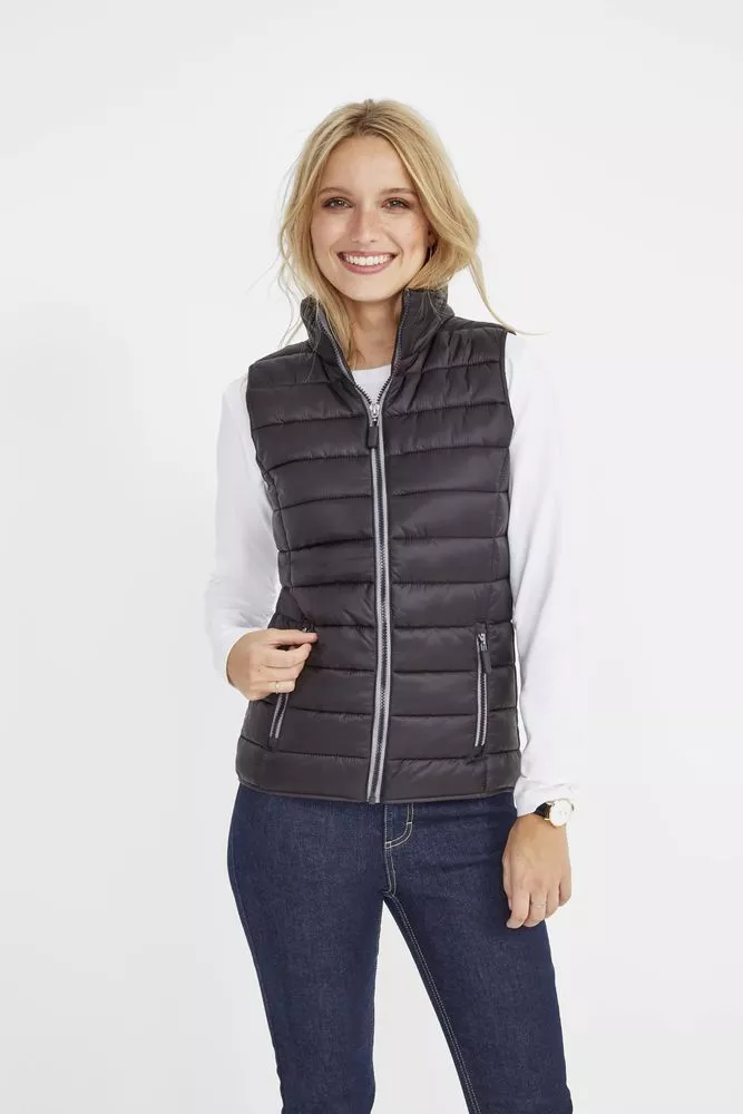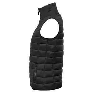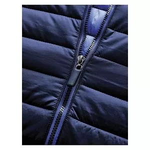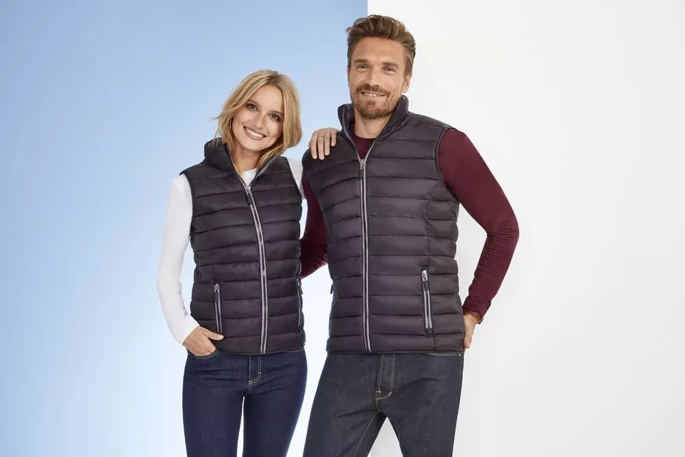 Приталенная модель, воротник-стойка. Застежка-молния в цвет жилета, два боковых кармана на молнии в цвет подкладки, окантовка по низу жилета в тон.