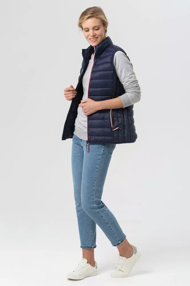 Жилет компактно складывается в чехол-мешочек на шнурке со стопорами.