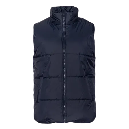 Универсальный жилет прямого силуэта с широкой горизонтальной стежкой, высоким воротником-стойкой, глубоким прорезным карманом и застежкой на молнию. Благодаря классическому лаконичному крою модель станет стильным дополнением как к мужскому, так и к женскому гардеробу.