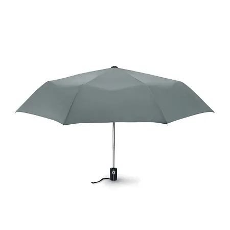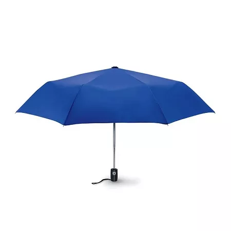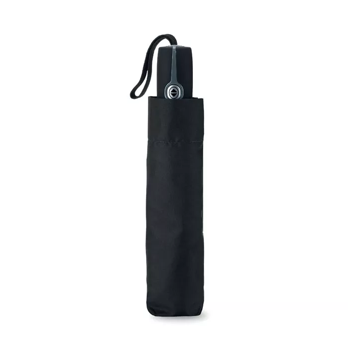 Зонт автомат в 3 сложения, устойчивый к ветру с металлическим стержнем, хромированным наконечником и черной прорезиненной ручкой. Длина в сложенном виде 21 см.