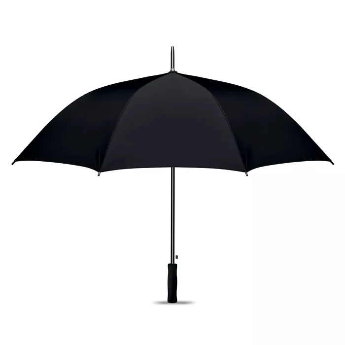 "Зонт полуавтомат размером 27"" из полиэфирного материала плотностью 190Т. Шток и спицы металлические, наконечники спиц пластиковые, внутренняя отделка серебристого цвета, ручка из вспененного материала."