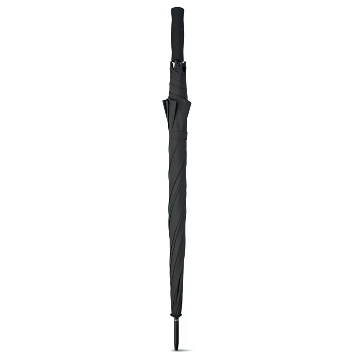 Зонт автоматический из полиэстера с пластиковыми наконечниками на спицах.